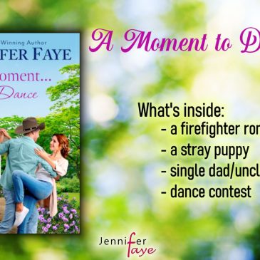 A Moment to Dance A Whistle Stop Romance, book 2 by Jennifer Faye   A teacher, a cowboy firefighter, his young nephew and a sweet puppy… Teacher Ella Morgan is moving to Whistle Stop for a chance to start … Continued
